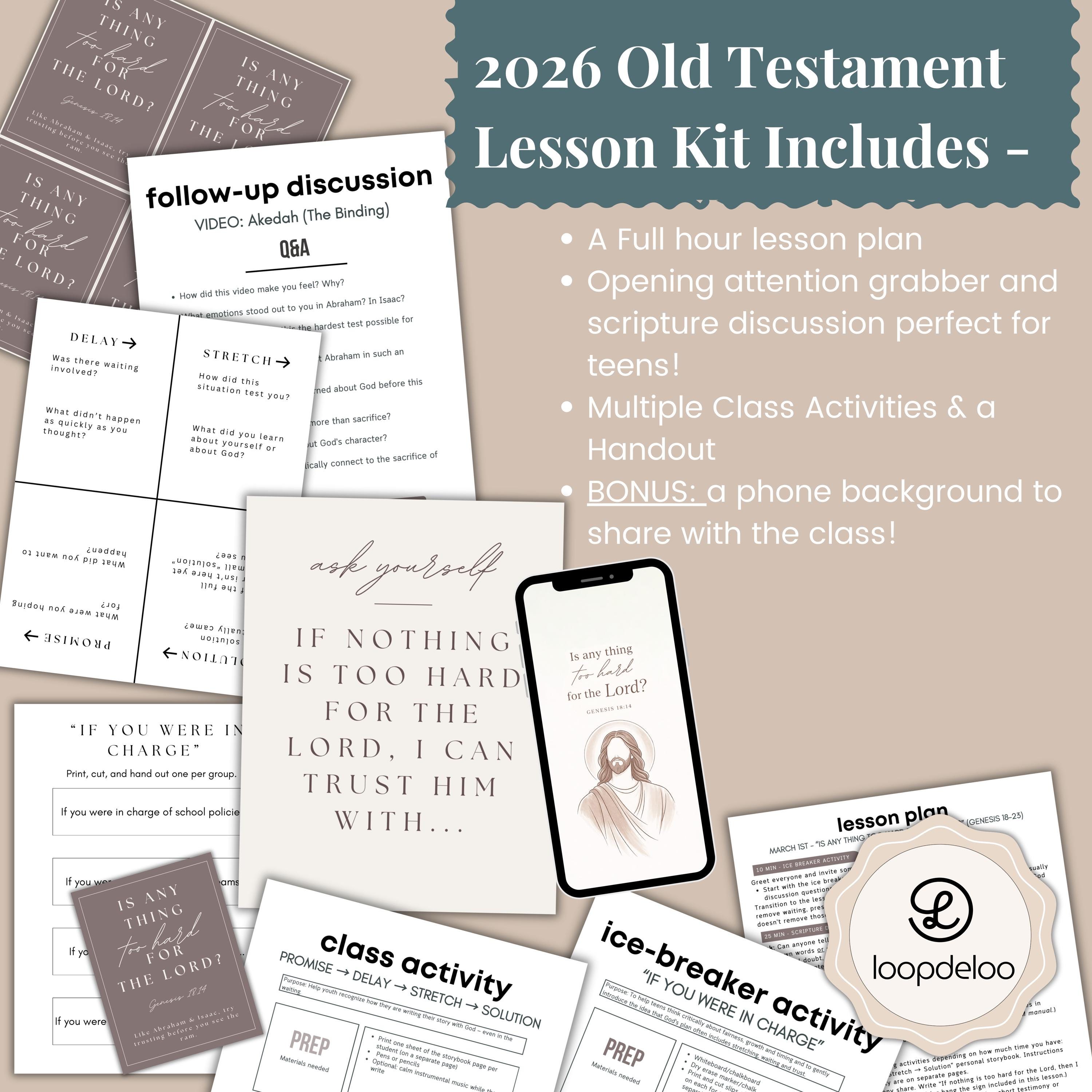 This ready-to-print LDS Sunday School lesson kit is built to help youth (ages 12–18) deeply understand the powerful question in Genesis 18:14: “Is any thing too hard for the Lord?”